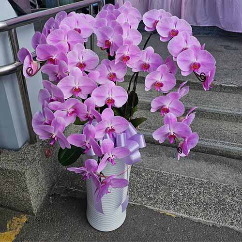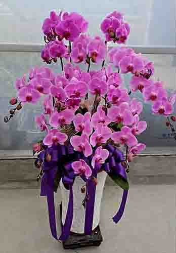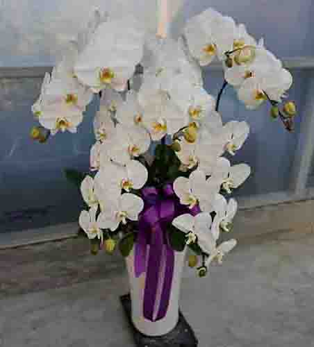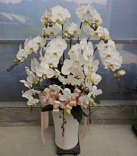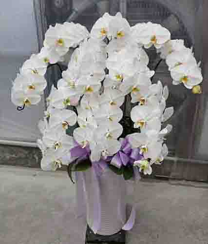 蘭花莊重典雅,適合喪禮使用,可放置約一個月,從往生至告別式都能保持亮麗大方。提早送花能表達敬意與陪伴之心,告別式送花除蘭花以外亦可送藝術花架。