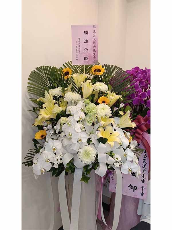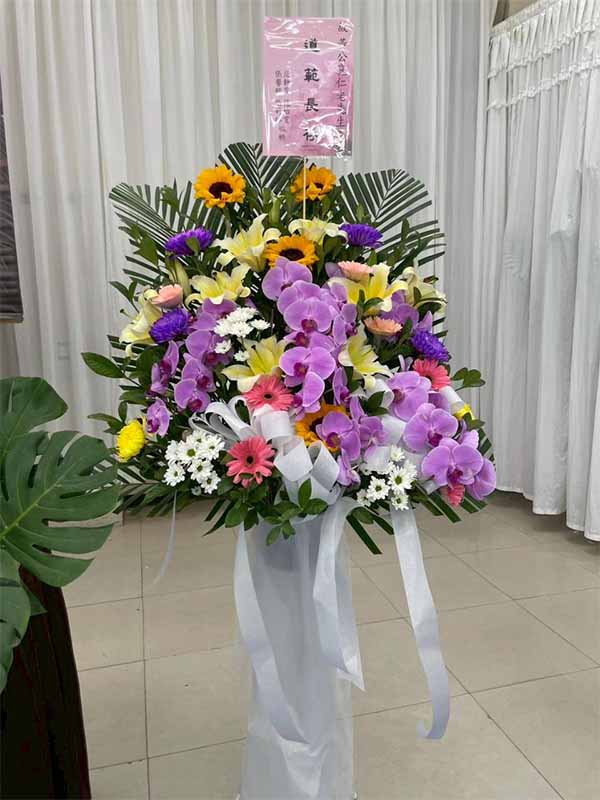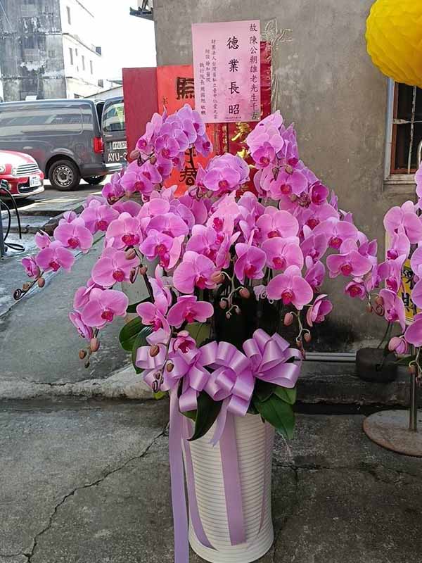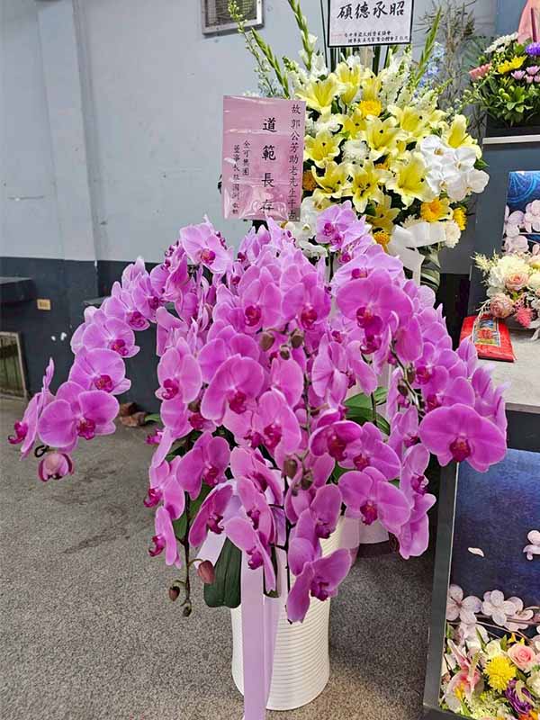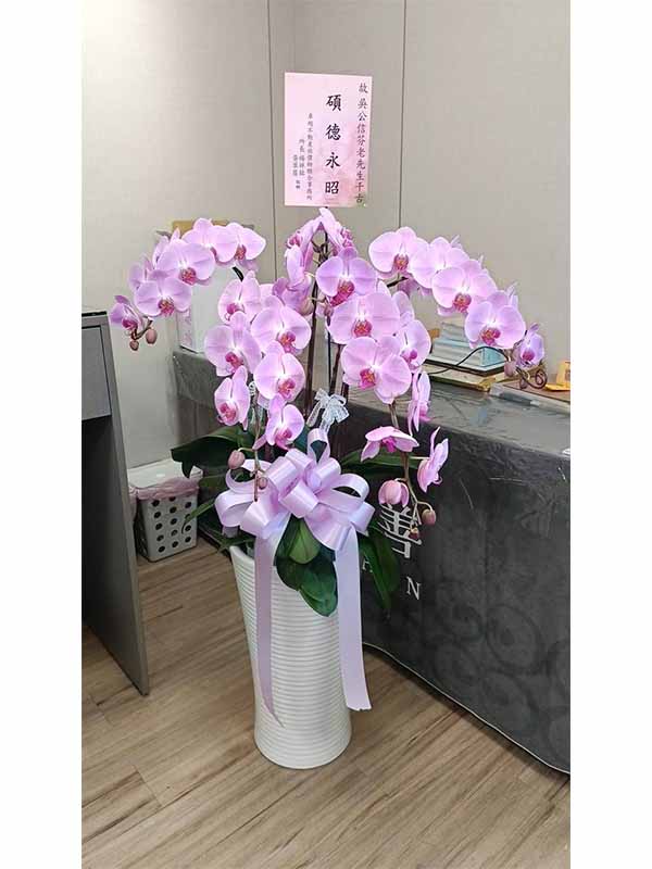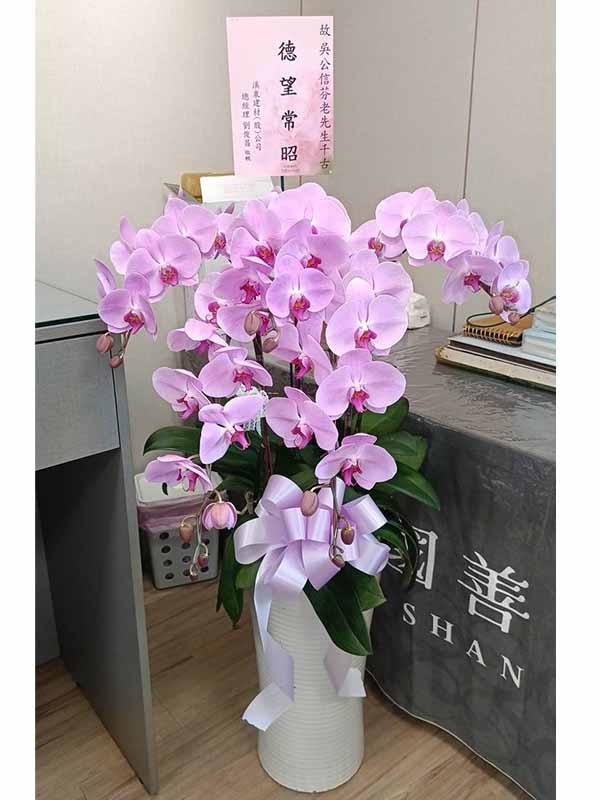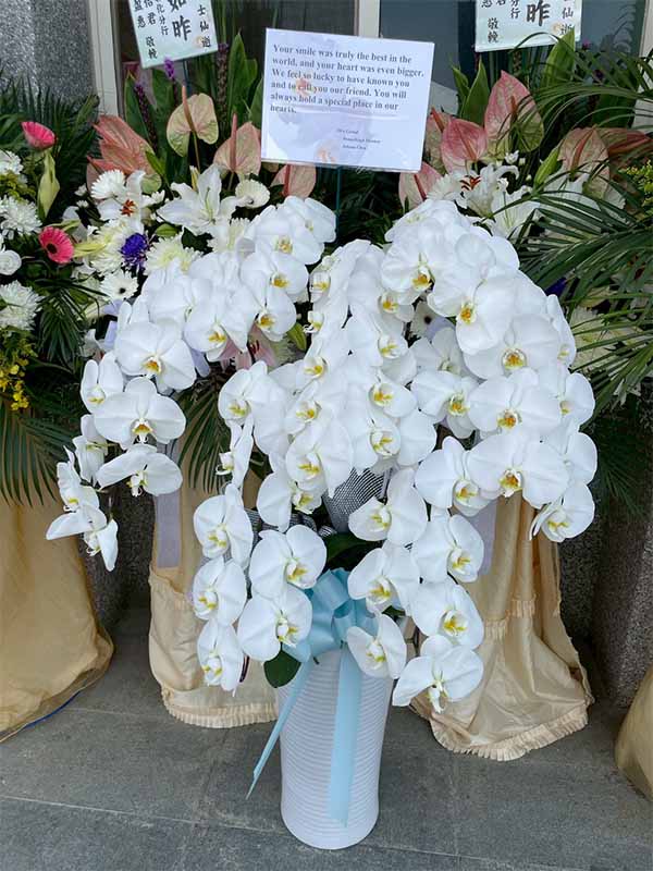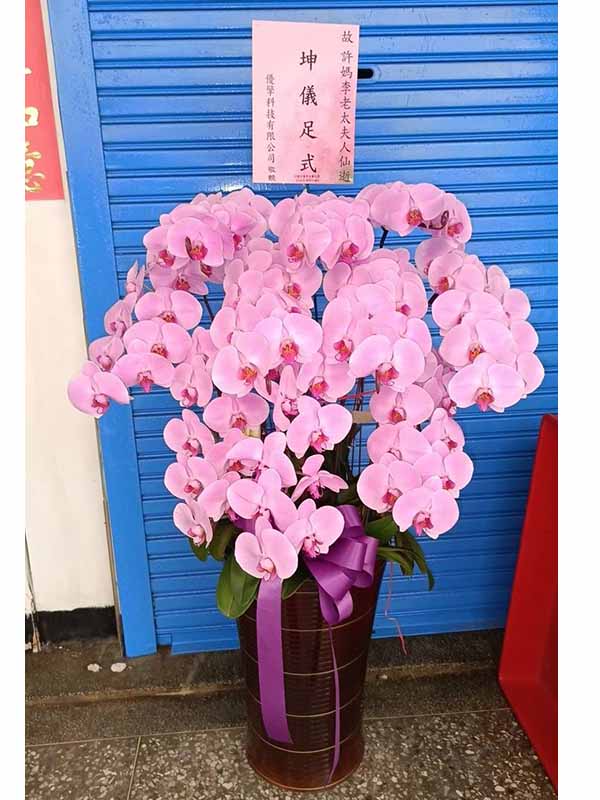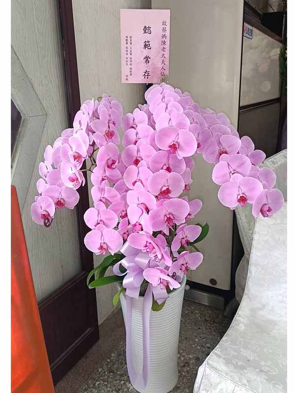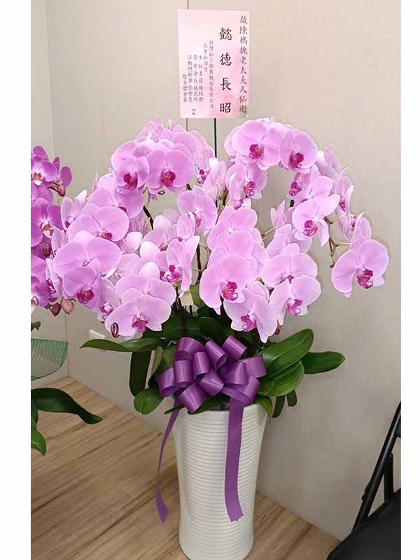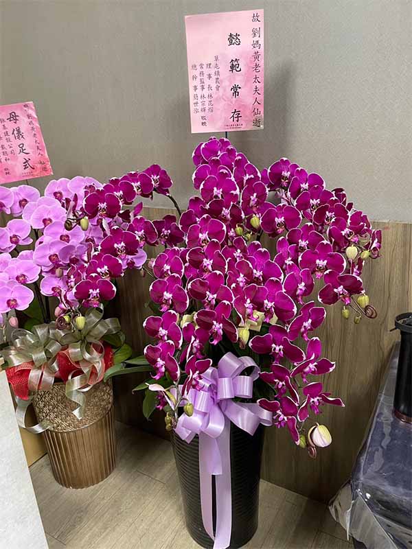 蘭花莊重典雅,適合喪禮使用,可放置約一個月,從往生至告別式都能保持亮麗大方。提早送花能表達敬意與陪伴之心,告別式送花除蘭花以外亦可送藝術花架。