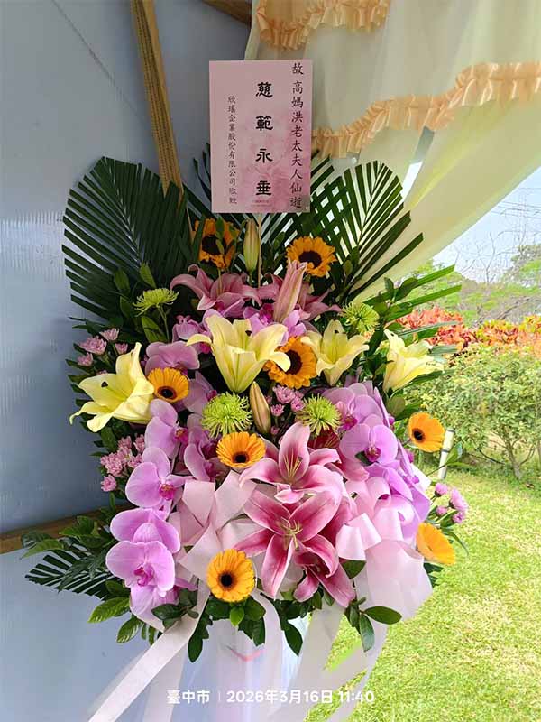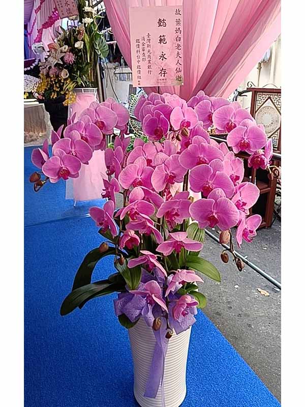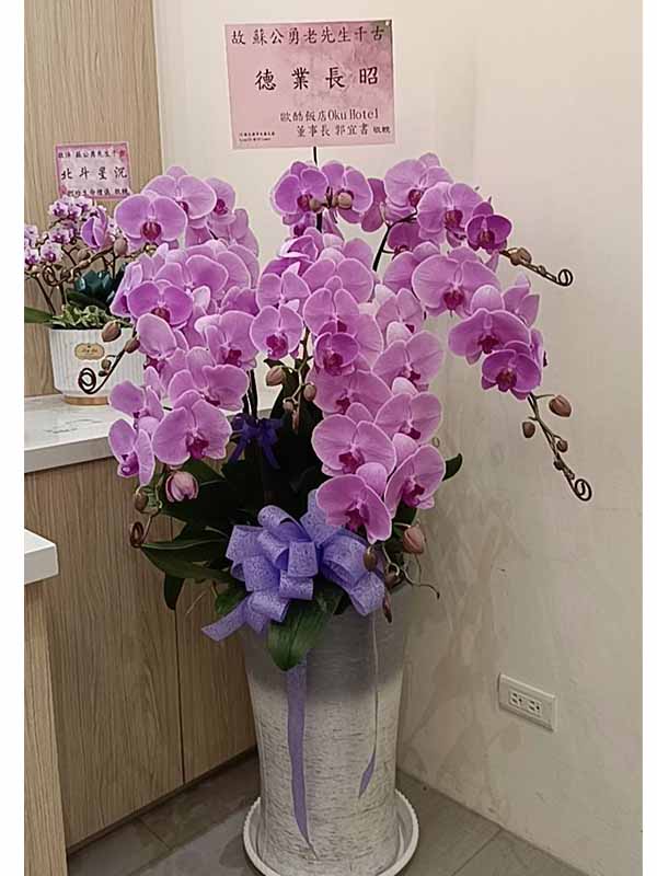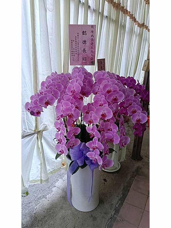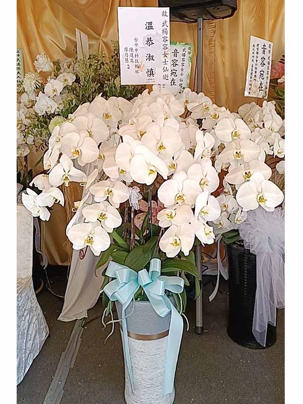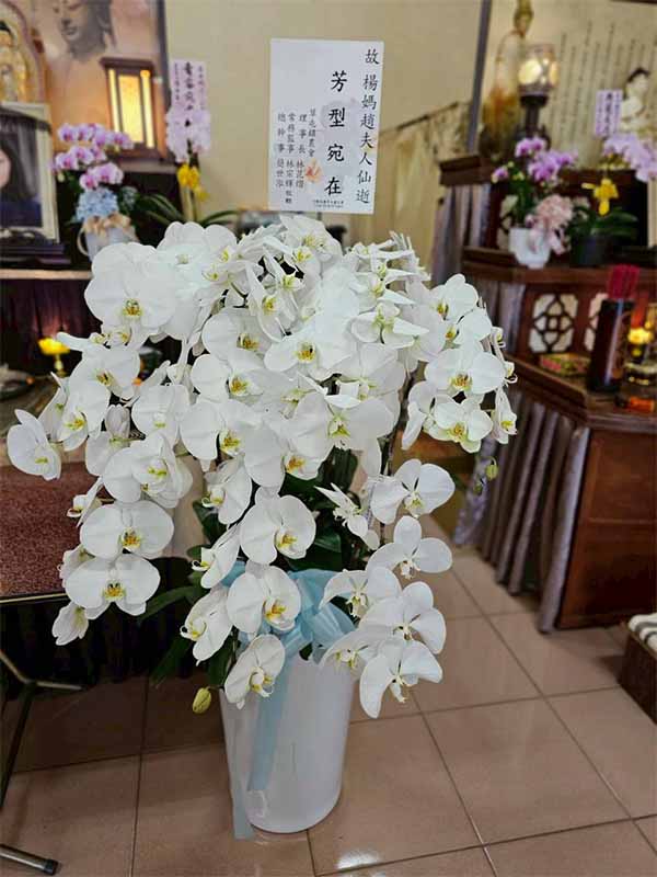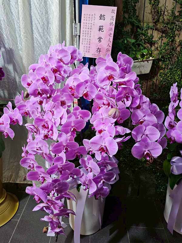 蘭花莊重典雅,適合喪禮使用,可放置約一個月,從往生至告別式都能保持亮麗大方。提早送花能表達敬意與陪伴之心,告別式送花除蘭花以外亦可送藝術花架。