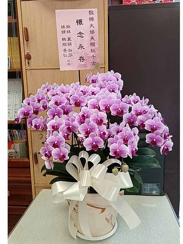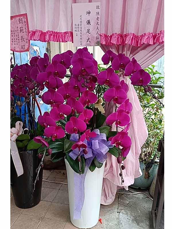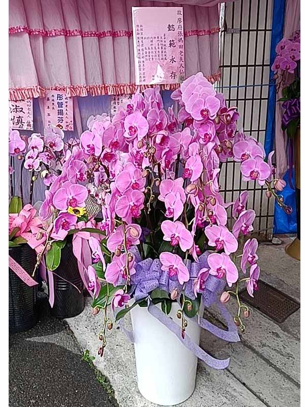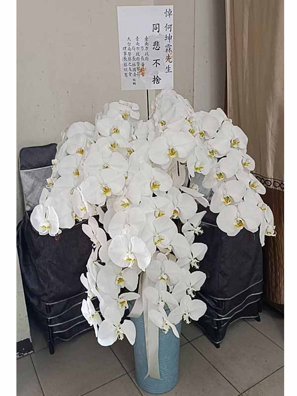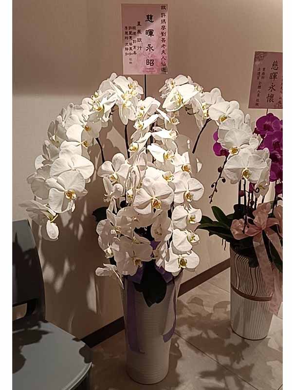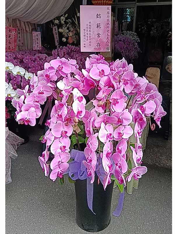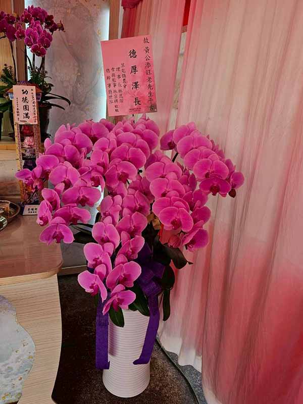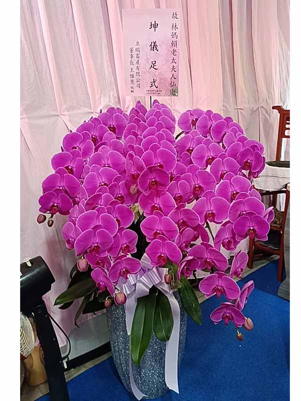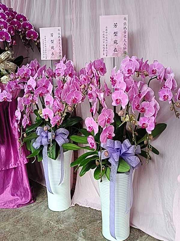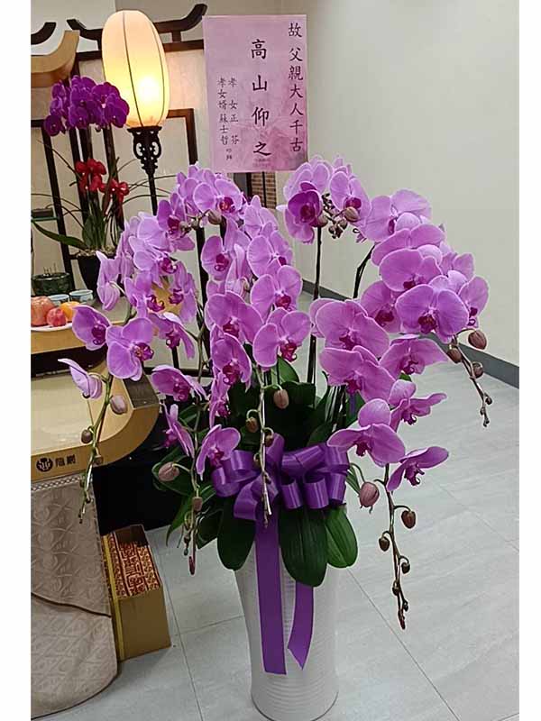 蘭花莊重典雅,適合喪禮使用,可放置約一個月,從往生至告別式都能保持亮麗大方。提早送花能表達敬意與陪伴之心,告別式送花除蘭花以外亦可送藝術花架。