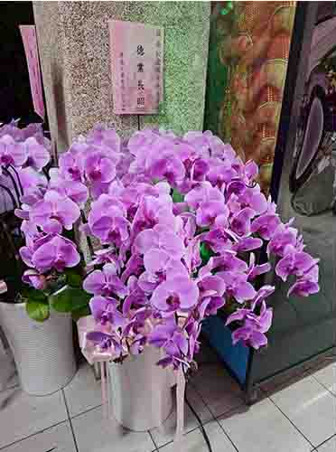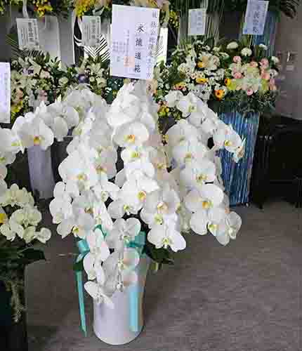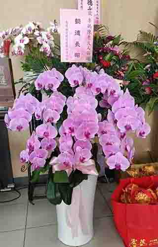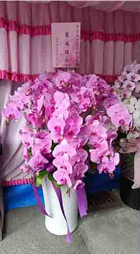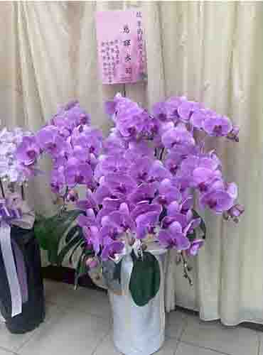 蘭花莊重典雅,適合喪禮使用,可放置約一個月,從往生至告別式都能保持亮麗大方。提早送花能表達敬意與陪伴之心,告別式送花除蘭花以外亦可送藝術花架。