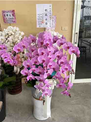 蘭花莊重典雅,適合喪禮使用,可放置約一個月,從往生至告別式都能保持亮麗大方。提早送花能表達敬意與陪伴之心,告別式送花除蘭花以外亦可送藝術花架。
