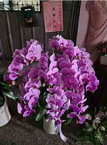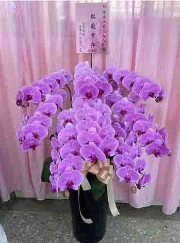 蘭花莊重典雅,適合喪禮使用,可放置約一個月,從往生至告別式都能保持亮麗大方。提早送花能表達敬意與陪伴之心,告別式送花除蘭花以外亦可送藝術花架。
