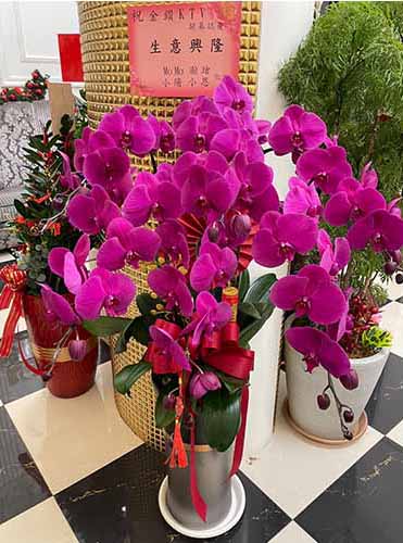 蘭花象徵榮景與祝福,適合開幕、新廠啟用、喬遷之喜或展覽擺飾,造型高雅,增添現場氣勢,展現隆重與心意。